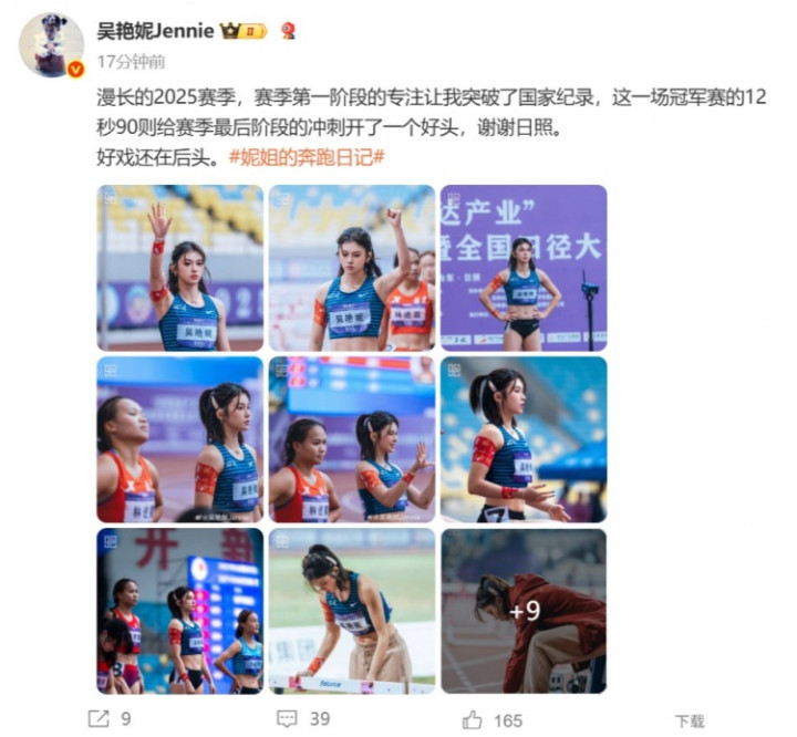 直播吧9月29日讯田径运动员吴艳妮更新社媒,总结全国田径冠军赛。